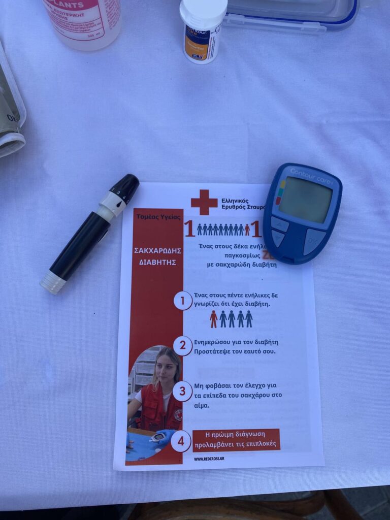 Το Περιφερειακό Τμήμα Ρεθύμνου του Ελληνικού Ερυθρού Σταυρού, μέσω του Τομέα Υγείας, πραγματοποίησε δράσεις ενημέρωσης και ευαισθητοποίησης με αφορμή την Παγκόσμια Ημέρα Σακχαρώδη Διαβήτη, προβάλλοντας το μήνυμα της πρόληψης και της έγκαιρης αναγνώρισης των συμπτωμάτων της νόσου.