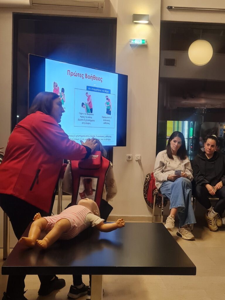 Ακολούθησε η παρουσίαση και επίδειξη πρώτων βοηθειών για βρέφη και παιδιά και