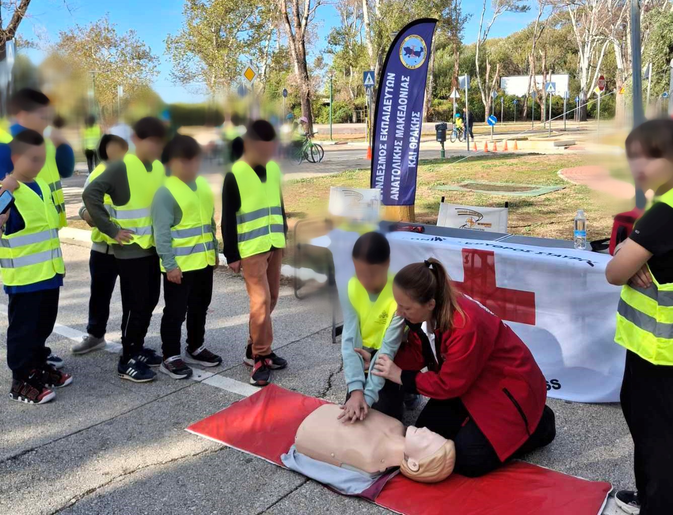 Το Περιφερειακό Τμήμα του Ελληνικού Ερυθρού Σταυρού Αλεξανδρούπολης συμμετείχε ενεργά στις 8, 9 και 10 Οκτωβρίου 2025 στη δράση της Περιφερειακής Ενότητας Έβρου-Διεύθυνσης Μεταφορών «Εβδομάδα Οδικής Ασφάλειας – Βιώσιμης Κινητικότητας και Κυκλοφοριακής Αγωγής», η οποία υλοποιήθηκε στο Πάρκο Κυκλοφοριακής Αγωγής της πόλης.