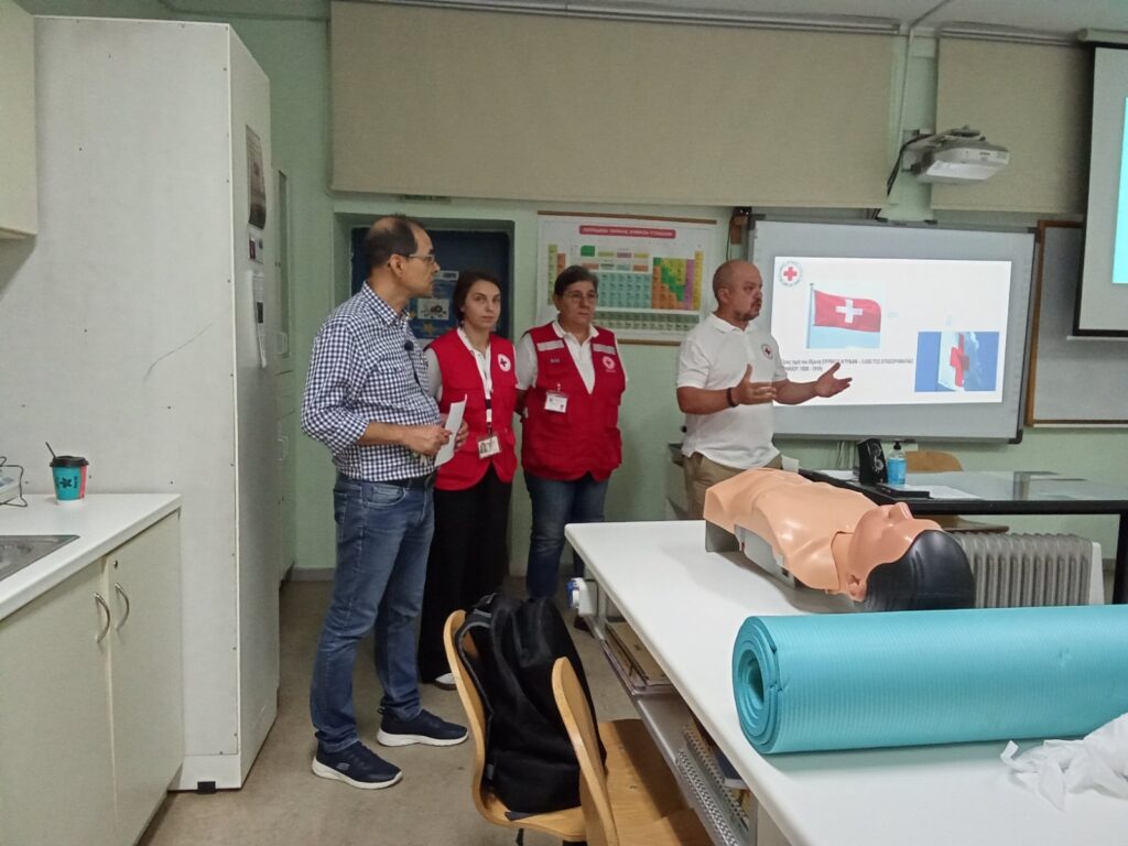 Αρχικά, έγινε μια σύντομη παρουσίαση των δράσεων του Ελληνικού Ερυθρού Σταυρού σε ομάδα μαθητών του σχολείου. Μεταξύ άλλων, τονίστηκε ότι ο Ελληνικός Ερυθρός Σταυρός είναι ο μεγαλύτερος ανθρωπιστικός οργανισμός στην Ελλάδα με σύνθετο έργο, που βασίζεται στην εθελοντική δράση και την άμεση ανταπόκριση των πολιτών. Κινητοποιείται στοχεύοντας πάντα στην ανακούφιση του ανθρώπινου πόνου σε περιόδους πολέμου και ειρήνης, στηρίζοντας τραυματίες, ασθενείς, πρόσφυγες, ηλικιωμένους, ανθρώπους με οικονομικές δυσκολίες και άτομα από κάθε ευάλωτη ομάδα του πληθυσμού. Η δράση του έχει συνδεθεί με την επαγρύπνηση, την αλληλεγγύη και τη φιλαλληλία, και είναι συνώνυμη της αφιλοκερδούς προσφοράς και της ανιδιοτέλειας.