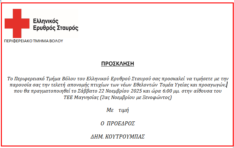 Ο Ελληνικός Ερυθρός Σταυρός τιμά την Παγκόσμια Ημέρα Εθελοντισμού διοργανώνοντας μεγάλη εορταστική εκδήλωση στην Πλατεία Συντάγματος την Παρασκευή 5 Δεκεμβρίου 2025 και ώρες 10:00 – 14:00, με κεντρικό θέμα: «Γίνε εθελοντής του Ελληνικού Ερυθρού Σταυρού». Στην ξεχωριστή εκδήλωση του Ε.Ε.Σ. θα συμμετάσχουν 370 μαθητές από σχολεία της Αττικής.